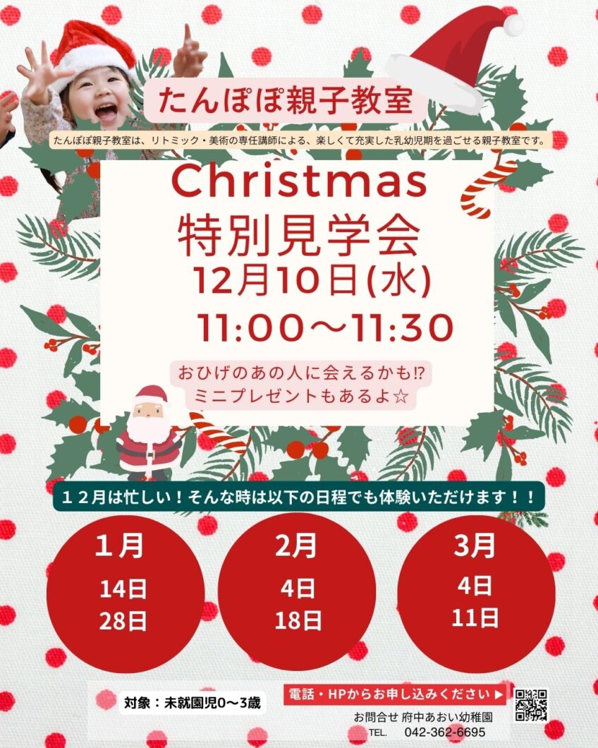 内容:親子教室の見学、サンタさんとのふれあい、ミニプレゼント ほか